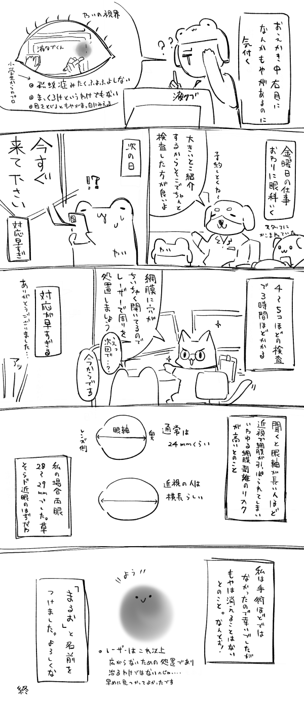 小学生のころから視力は落ち続けてきたのでいつかは失明するんだろうな~と思ってたんですが本当に進行中だったとは思いませんでした。いつもなら病院自体苦手なのでずるずる引きずっていたのですが早めに行って良かった。まあ見え始めてから一週間引きずっていたんですけどね!!