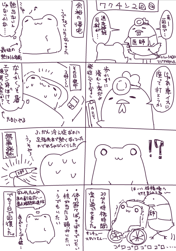 いくら寝返りうっても枕が当たる部分が痛くて眠れなくて死ぬんか?と本気で思ったと同時に今まで主だった感染症もろくにかからず頑丈に過ごしてきたありがたみをひしひし感じるなどしました